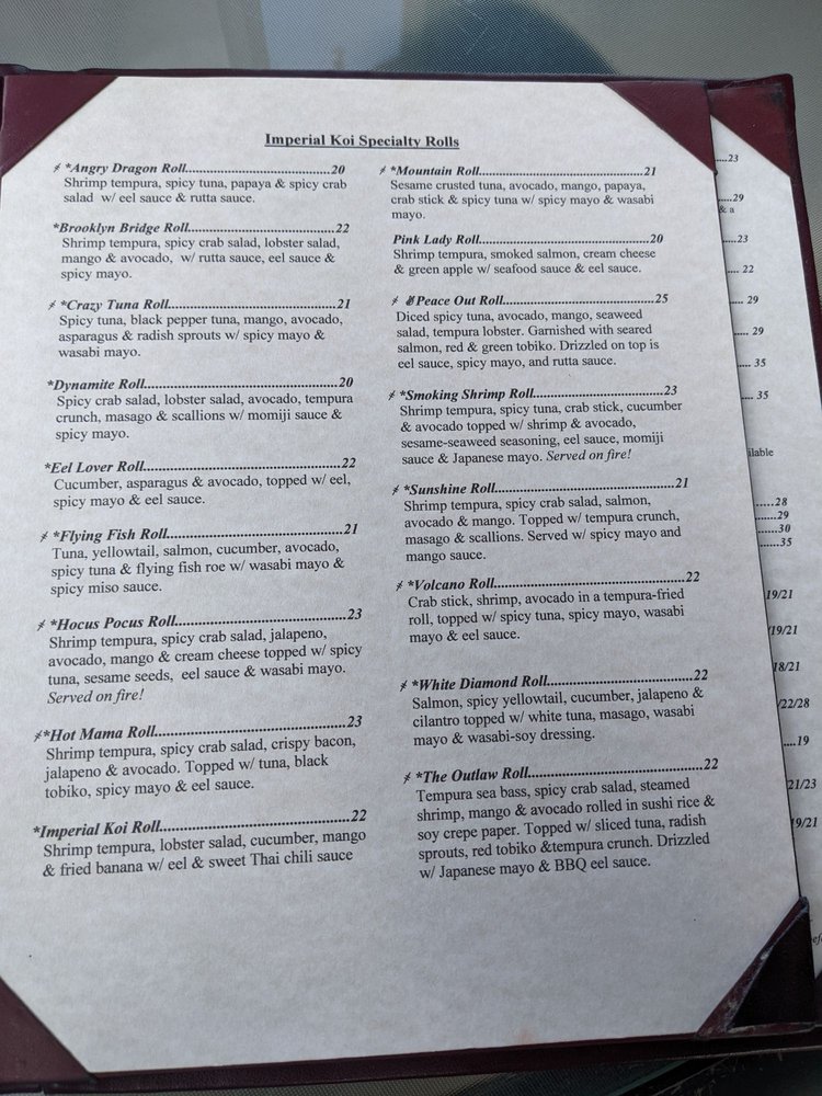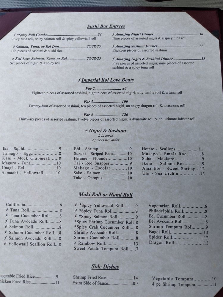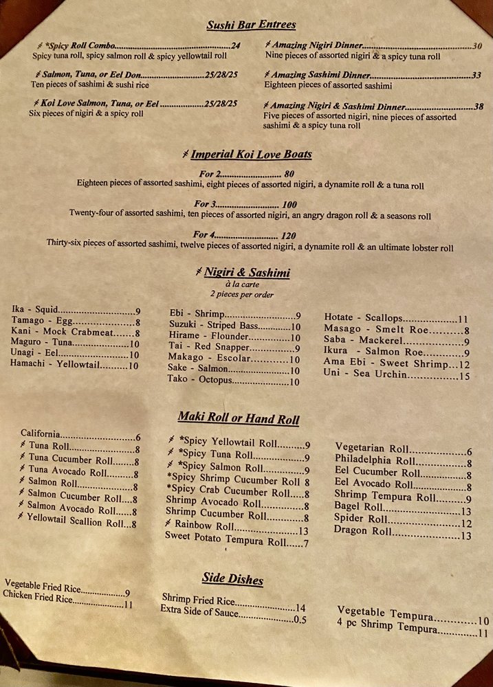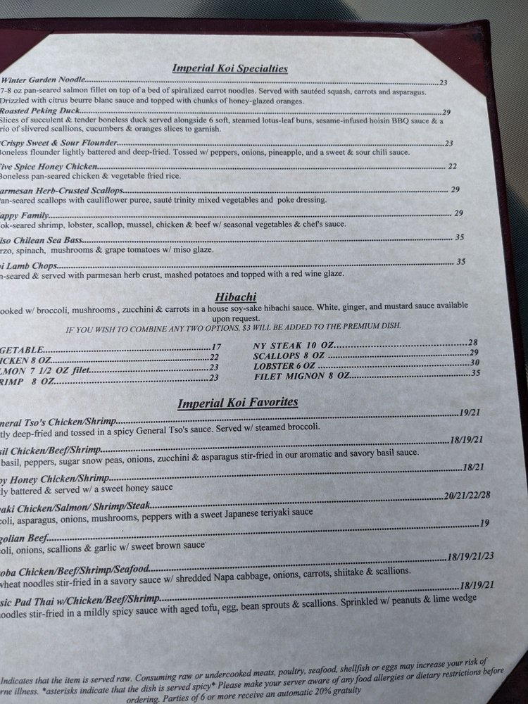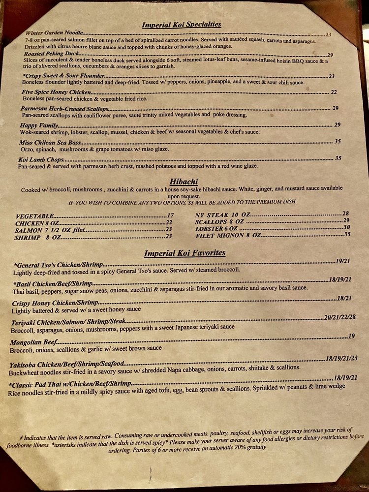 Imperial Koi Asian Bistro and Sushi Bar Menu