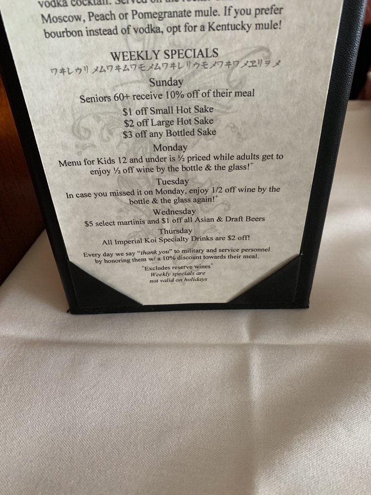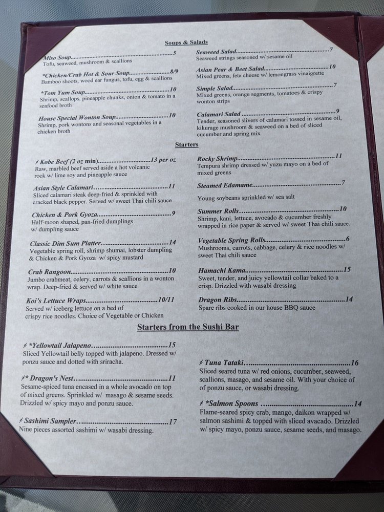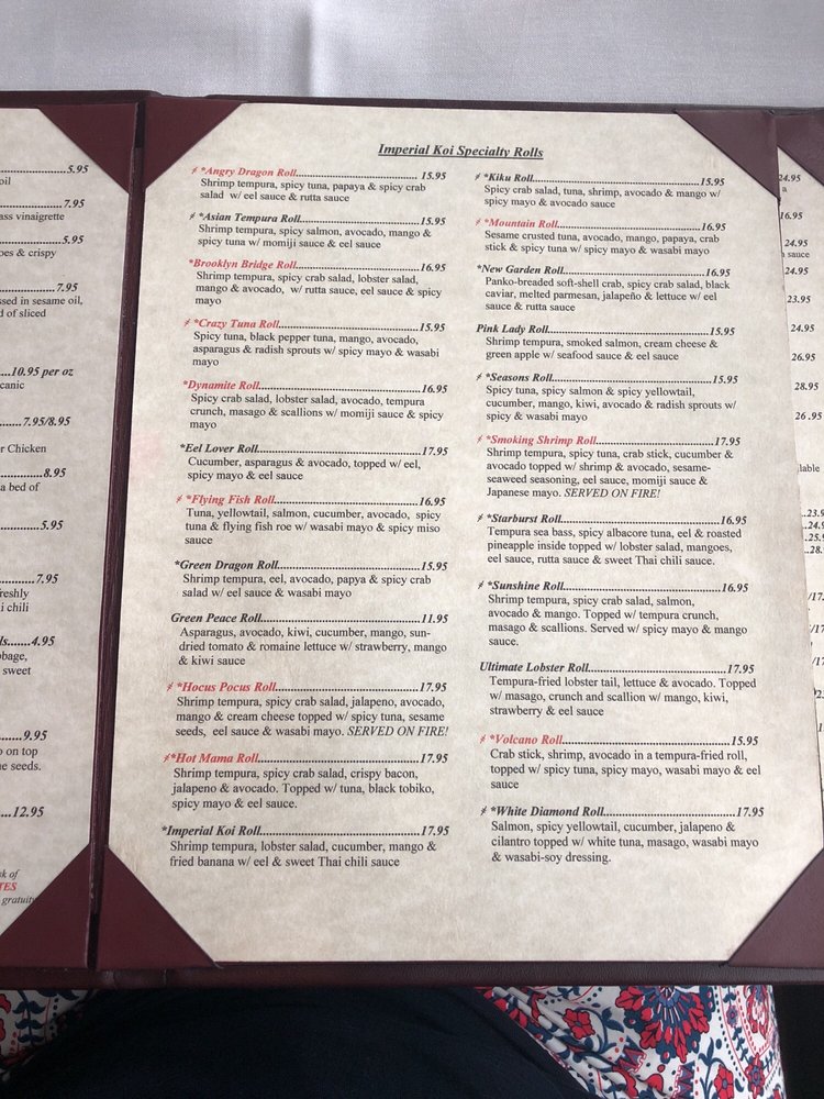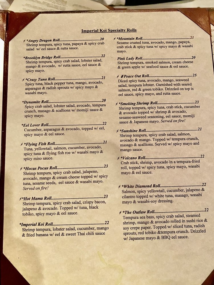 Imperial Koi Asian Bistro and Sushi Bar Menu